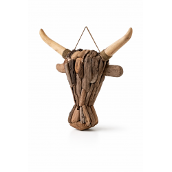 Tête de Buffle en bois flotté à suspendre. Fabrication Artisanale.