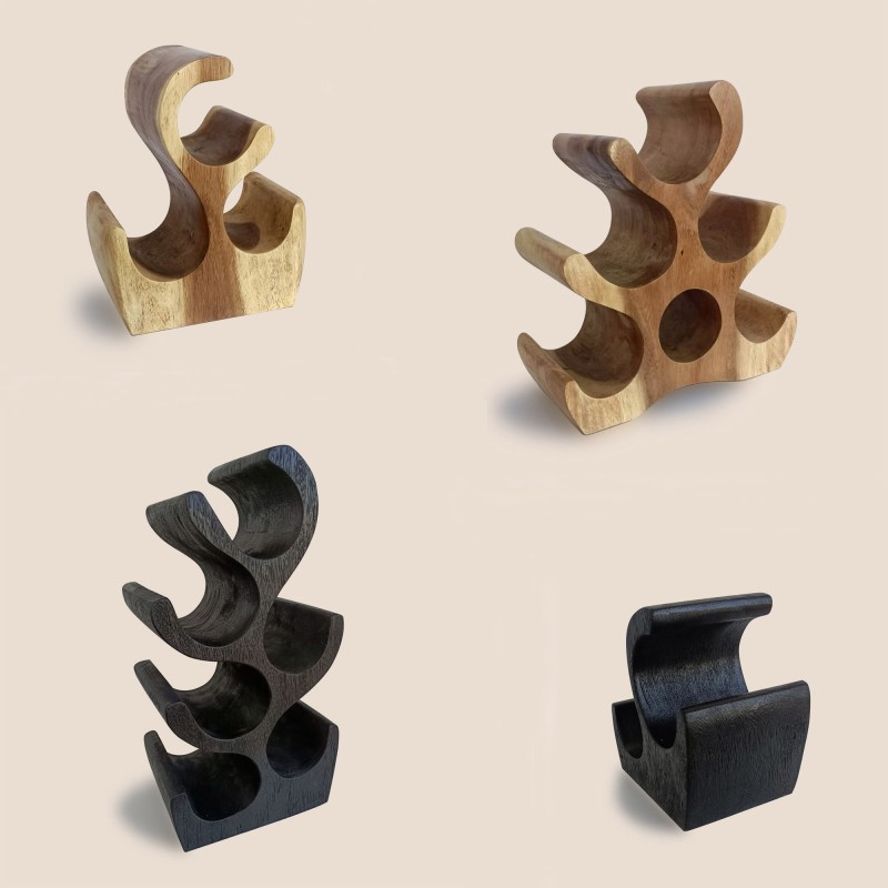 Porte-bouteilles original en bois de Suar massif.