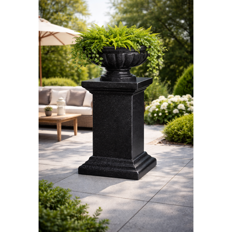 Stand en Terrazzo noir, support pour une poterie ou une sculpture.