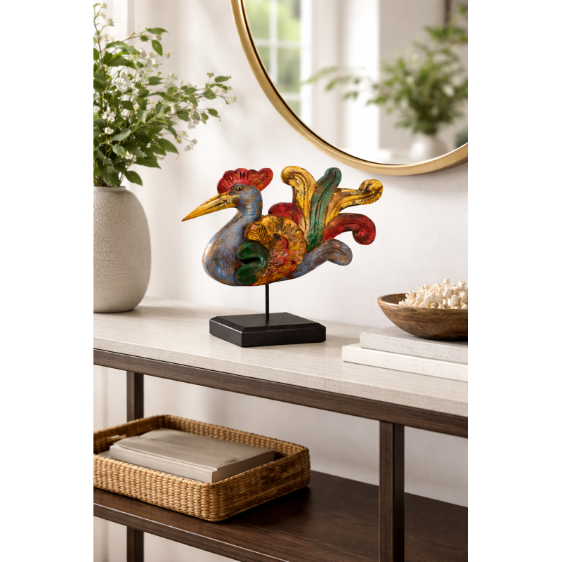Statuette en bois peint, sculptée artisanalement à Bali.